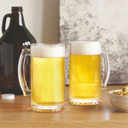 Drink your pilsner from this epic glass beer mug with handle! This extra large 26 oz. beer stein is perfect for anyone who needs a bigger beer glass than the usual 16 oz beer glass. Thick glass walls, a heavy base, and sturdy handle make this large glass beer mug a craft beer geek favorite.